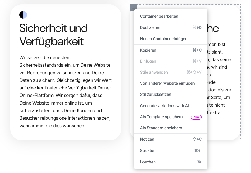Jetzt kannst du den Inhalt des duplizierten Containers ganz nach deinen Wünschen anpassen: