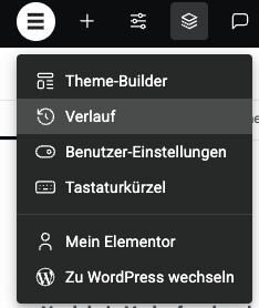 - Klicke oben links im Elementor Editor auf das Elementor Symbol (≡) -> Verlauf