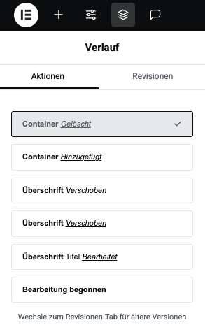 Mit dem Elementor Verlauf kannst du jederzeit Änderungen rückgängig machen oder ältere Versionen deiner Seite wiederherstellen